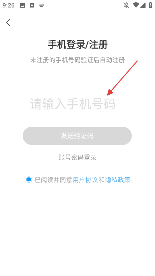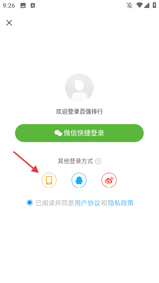 2、选择【其他登录方式】中的手机图标,进入手机登录/注册页面。