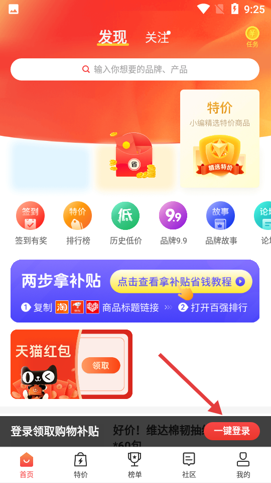 2、点击底部【特价】按钮,进入特价商品相关页面查看优惠商品。