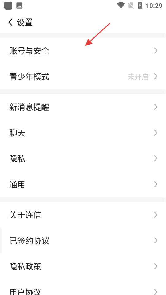 3、在设置页面点击【账号与安全】,进入账号与安全页面。