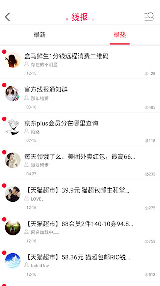3、点击进入活动线报页面,就能看到最新最热的线报