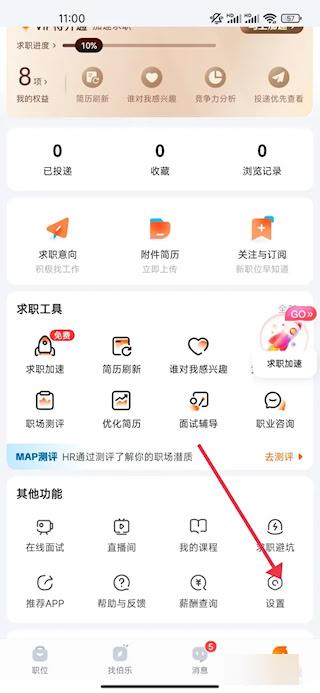 1、打开前程无忧软件,点击设置图标。