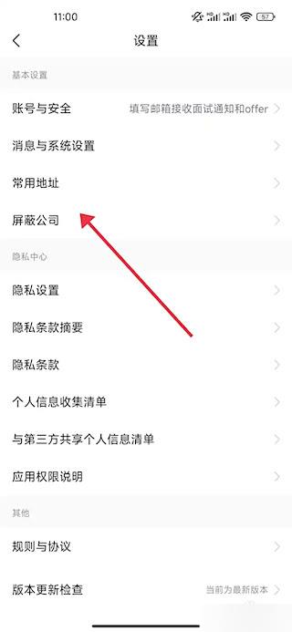 2、进入设置界面后,选择“屏蔽公司”选项。