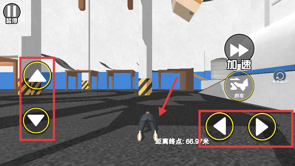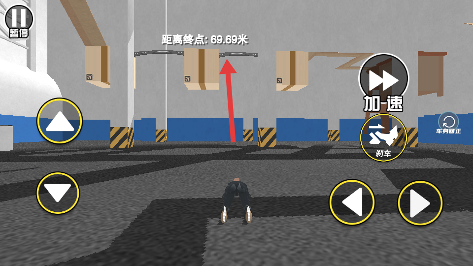 4、看上方“距离终点”,调整方向,稳稳冲向终点通关。