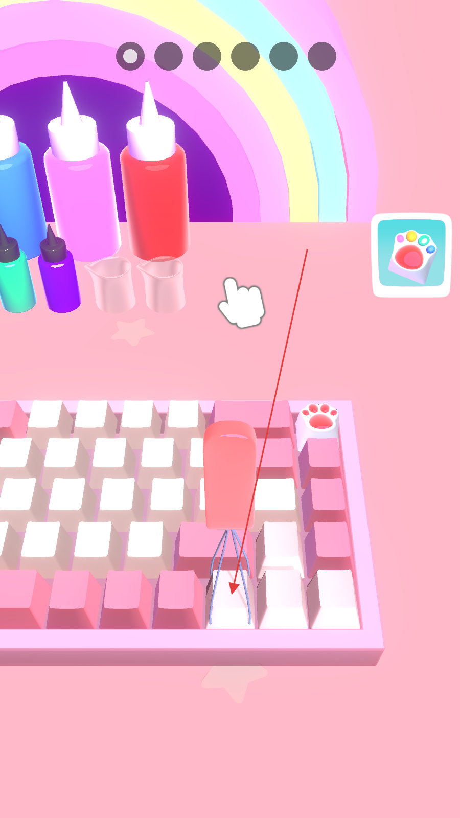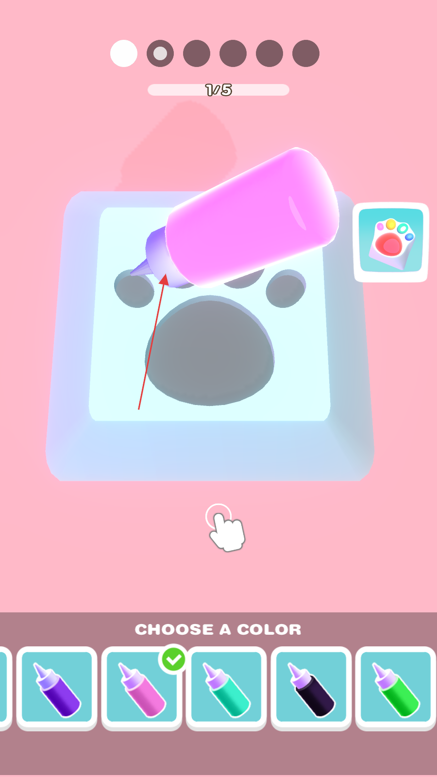 3、选择喜欢的颜料,长按瓶子,为模型凹槽填色。
