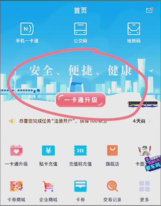 2、进入升级界面:在APP首页找到并点击“一卡通升级”按钮。