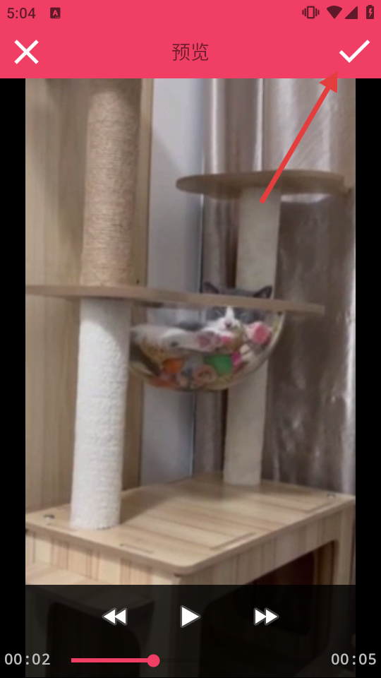 4、在预览页,点右上角对勾,完成视频倒放制作。