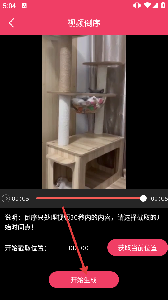 3、在视频倒序页,点击页面下方的【开始生成】,进入预览页。