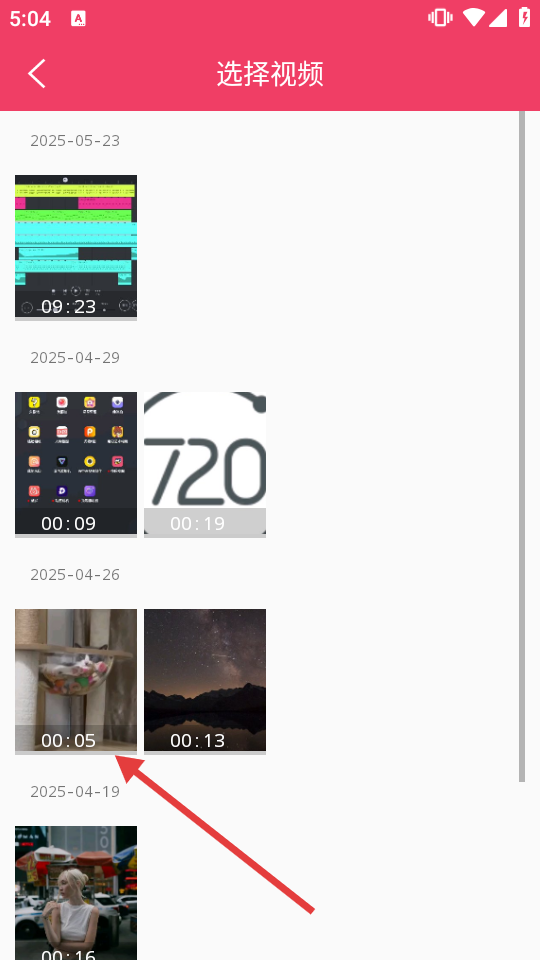 2、在选择视频页,选要倒放的视频,进入视频倒序页。