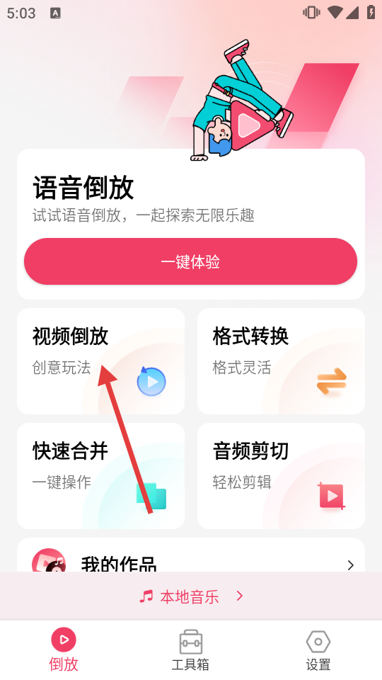 1、在APP首页点【视频倒放】,进入选择视频页。