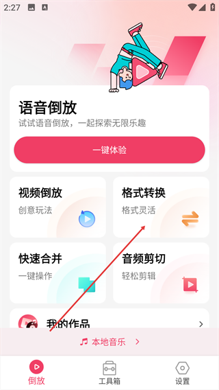 1、在倒放功能页面,点击【格式转换】选项,进入音频文件选择页面。