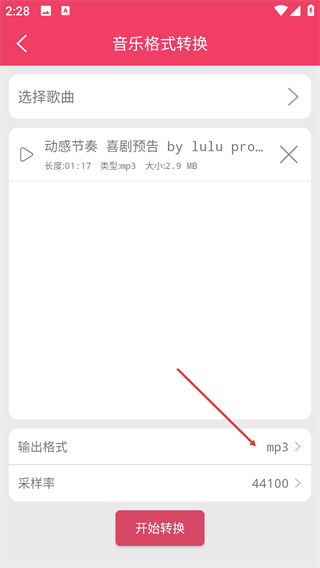 3、格式调整:进入转换界面导入音频,选择目标格式如MP3转AAC,系统会自动完成处理保存。