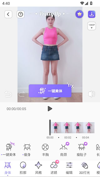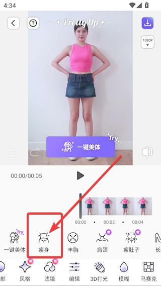 4、再点击【一键美体】