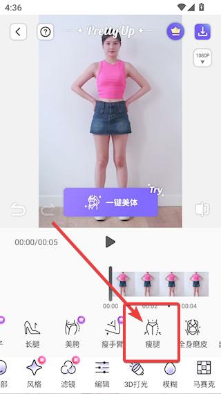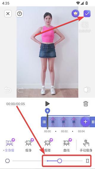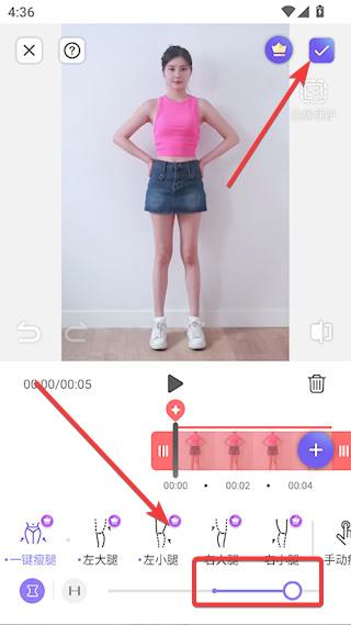 3、点击【瘦腿】,跟瘦身一样操作,记得点击右上角√