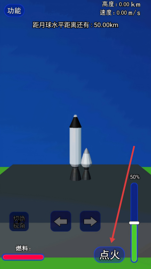4、参数合适后点【点火】,控制火箭飞行,完成月球探索任务。