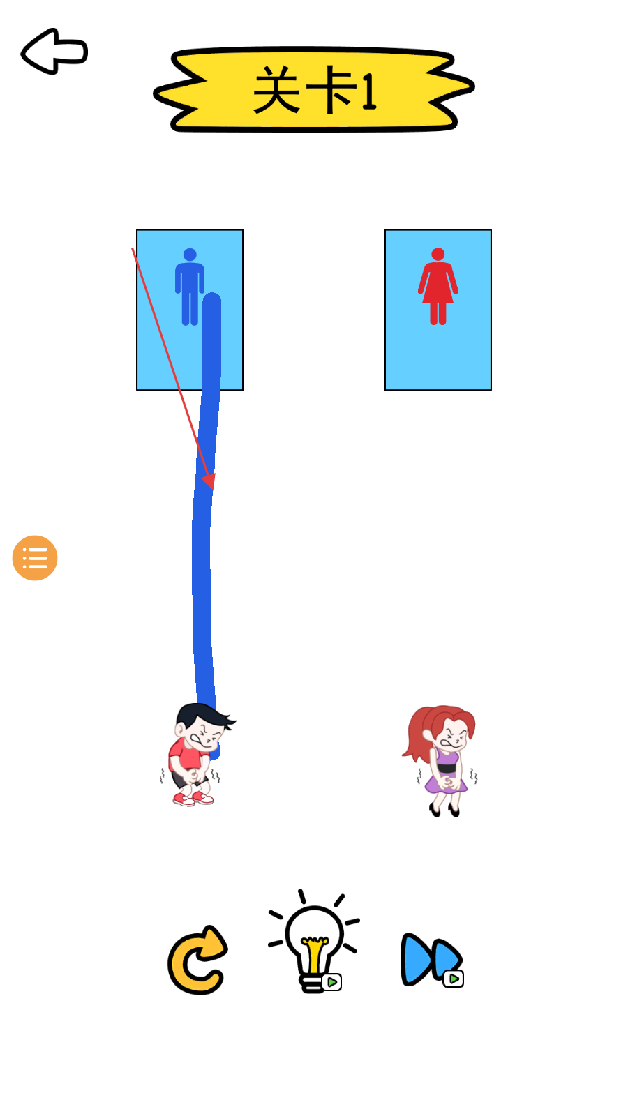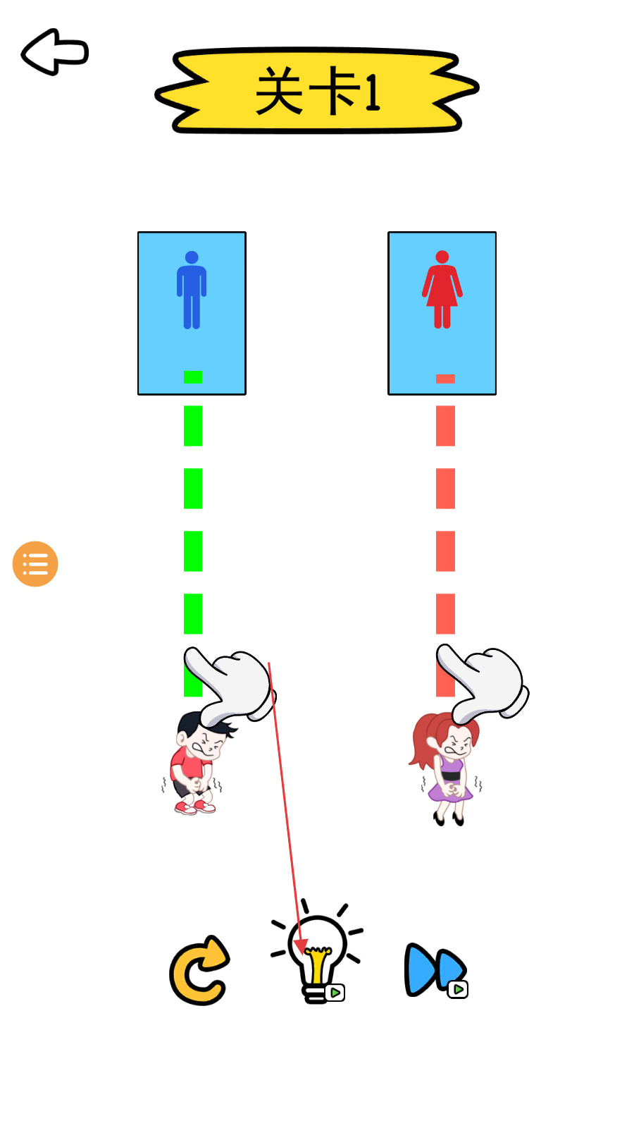 3、滑动屏幕绘制线条,连接男孩与男厕、女孩与女厕的路径。