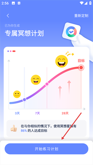 4、系统生成专属冥想计划后,点击“开始练习计划”按钮,开始冥想计划。