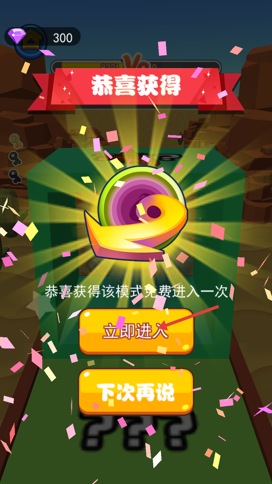 4、通关后领取【恭喜获得-该模式免费进入一次】奖励,选择【立即进入】新内容,积累更多资源道具。