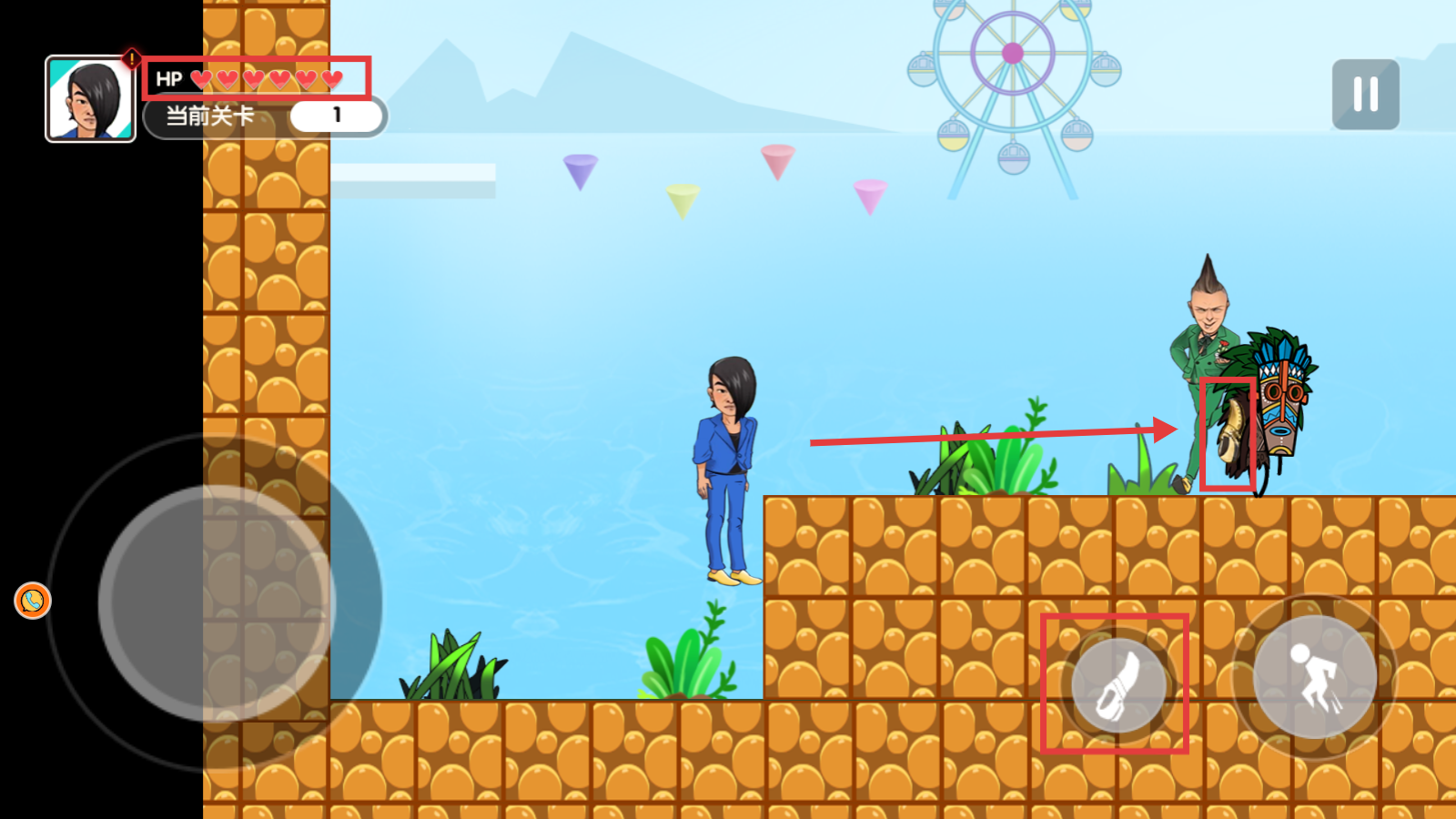 4、碰到敌人后,点击攻击键扔出鞋子进行攻击,合理走位,减少受到的伤害,朝着终点迈进吧。