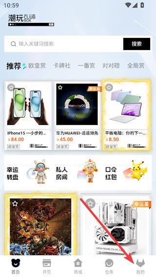 1、下载安装后点击进入潮玩CLUB APP首页,点击右下角【我的】