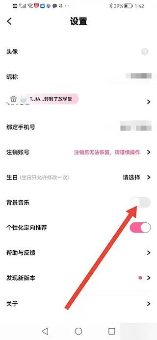4、进入设置页面,关闭【背景音乐】的开关即可。