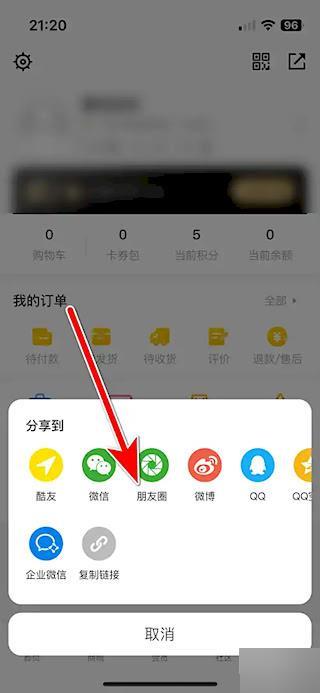 第三步:选择【朋友圈】。