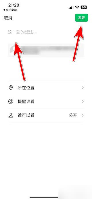 第四步:输入内容后,点击【发表】即可分享个人的主页到微信朋友圈。