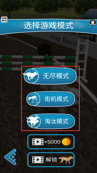 1、进入游戏,在【无尽模式】、【街机模式】或【淘汰模式】选择其一,踏入狗狗赛跑旅程呀。
