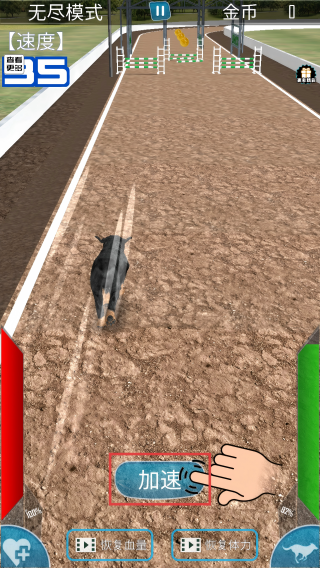4、点击【加速】按钮,提升狗狗速度,向前冲刺,让狗狗一举拿下胜利吧。