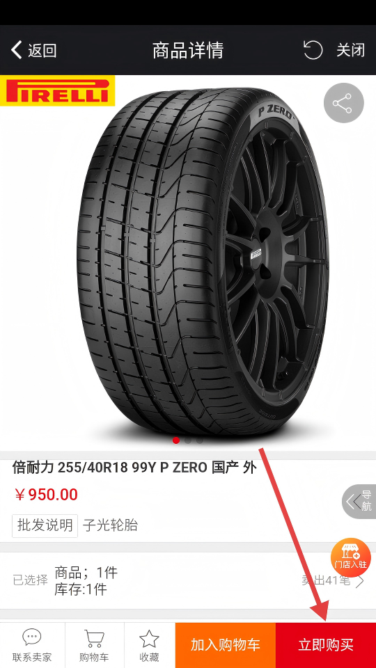 4、在商品详情页点击【立即购买】按钮,即可完成轮胎采购操作。