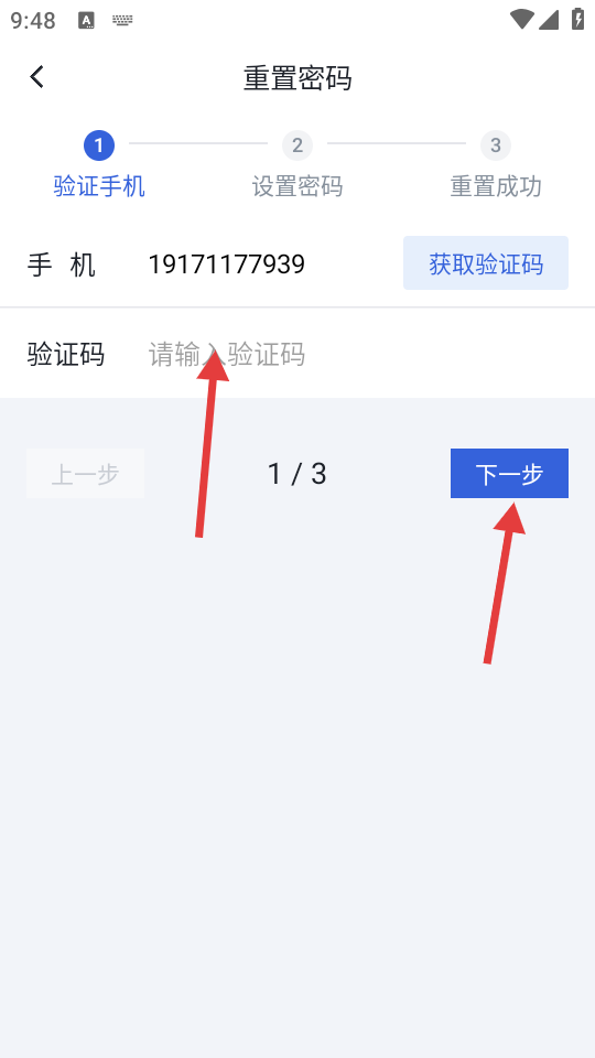 4、在重置密码页面,完成相关信息填写,即可继续后续设置新密码的操作。