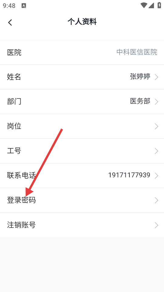 3、在个人资料页面选择并点击【登录密码】,进入重置密码流程。