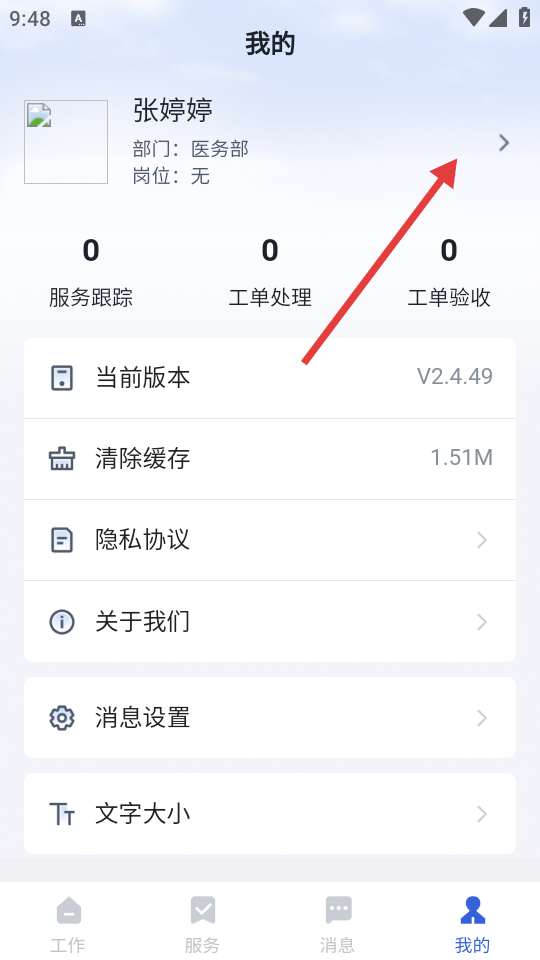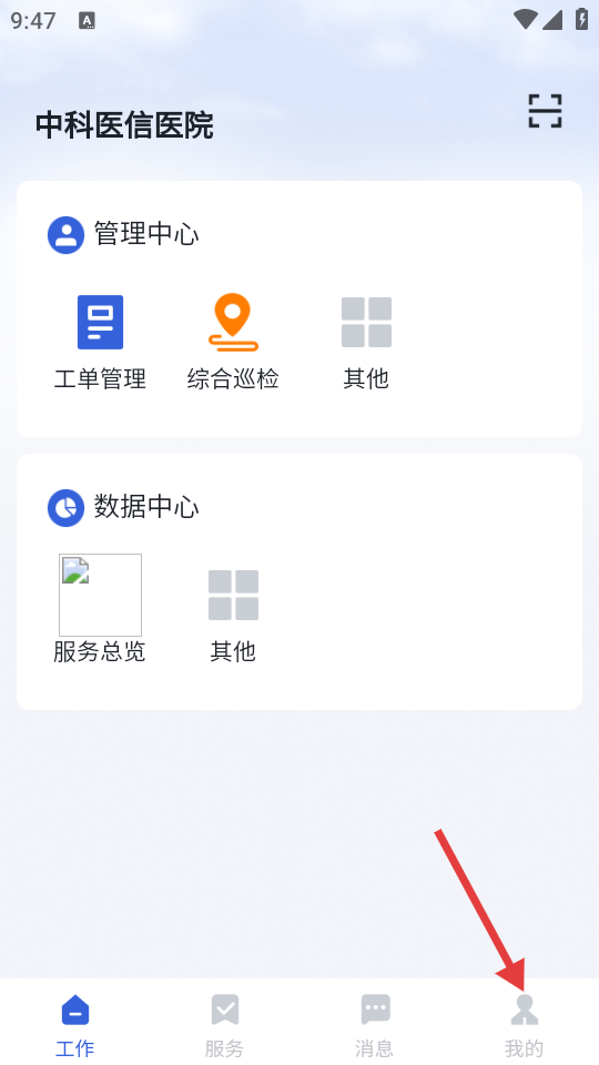1、打开应用,点击工作页面底部【我的】按钮,进入个人中心页面。