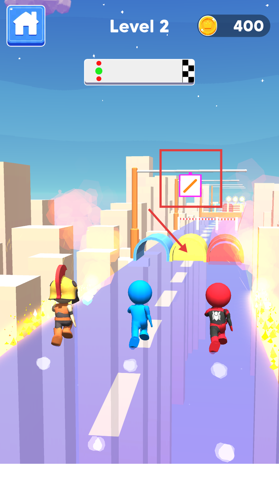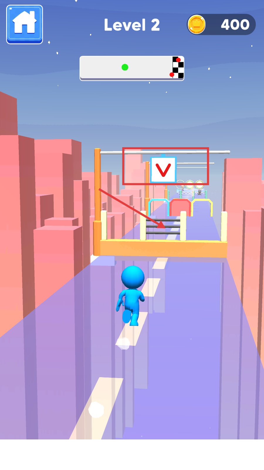 2、在赛道上奔跑,注意上方提示的图形,并在屏幕上画出来穿越障碍。