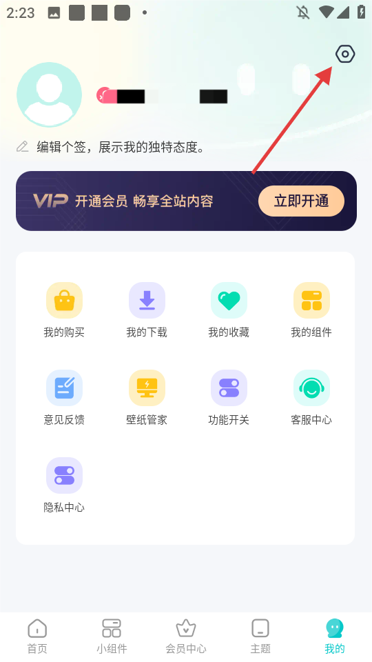 2、在个人页面点击右上角设置图标,进入设置页面。