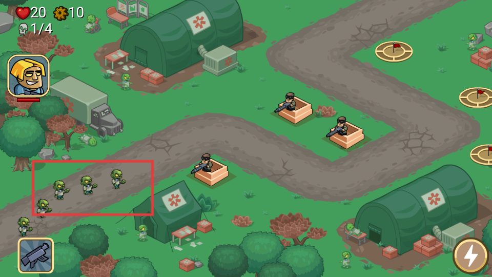 4、依靠防御塔,攻击路径上袭来的僵尸,防御僵尸。