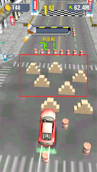 4、遇到障碍物时,合理操作,避开障碍,冲向终点。