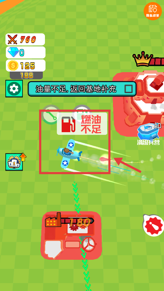 4、注意燃油,及时返回基地补充,持续推进关卡,完成战斗目标。