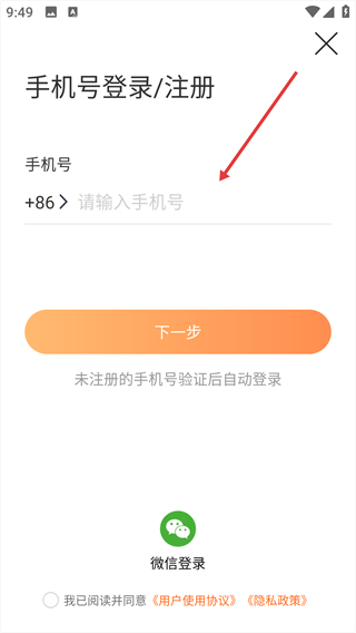 3、在输入框中填写手机号,点击【下一步】按钮。