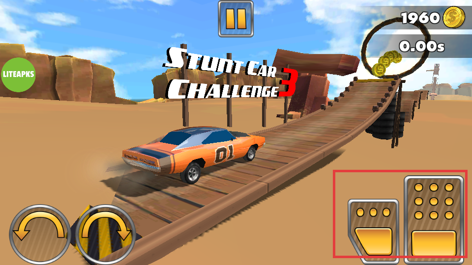 3、驾驶时操作右侧踏板按键,控制车辆前进、后退,冲上斜坡。