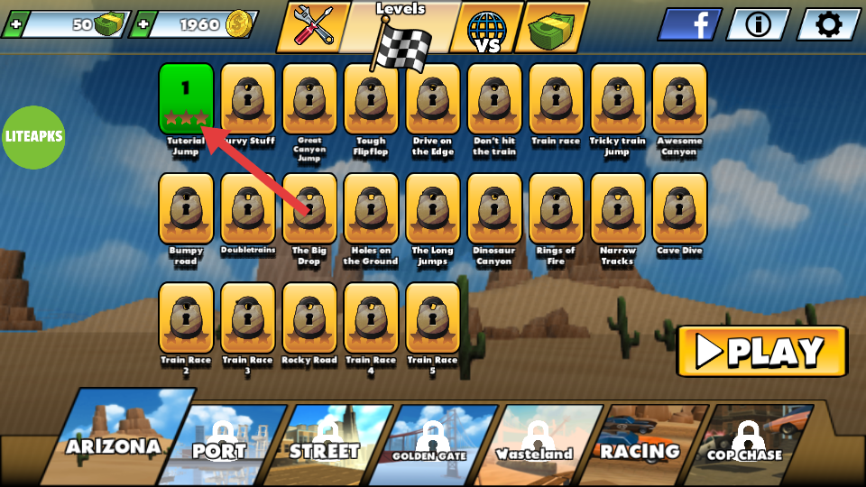 2、进入关卡界面,选择【Tutorial-Jump】绿色关卡,开启挑战。