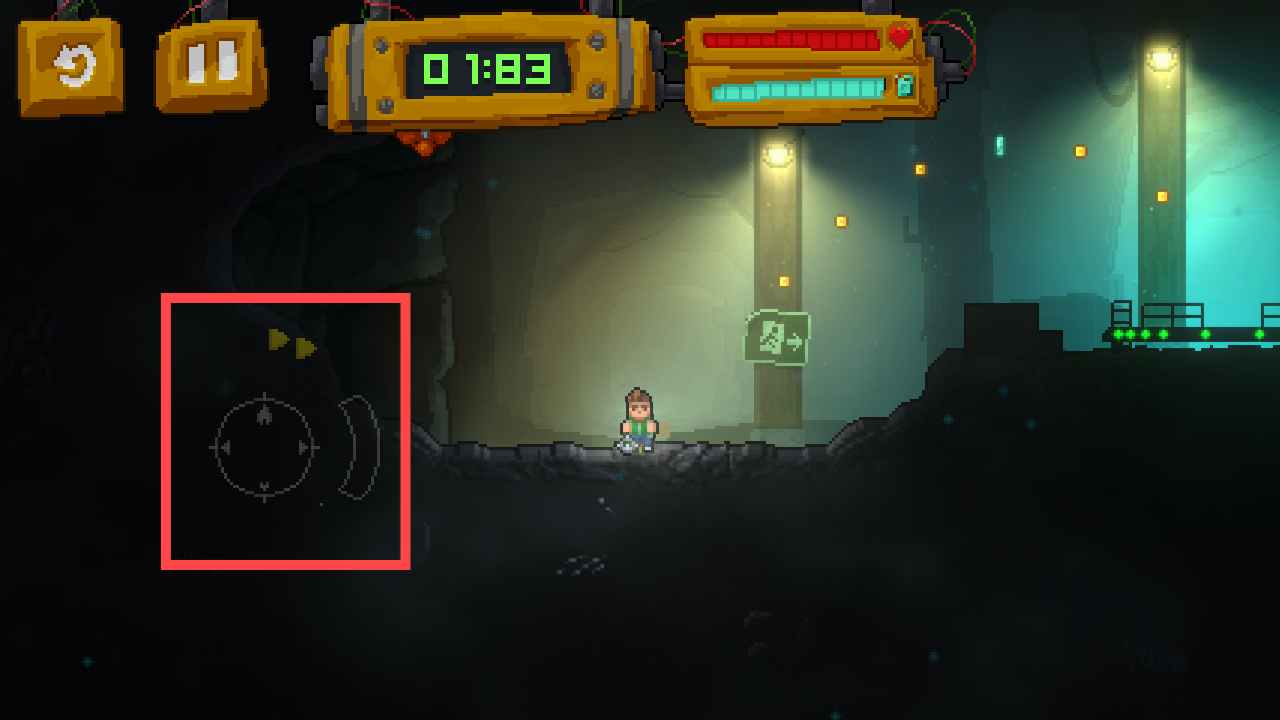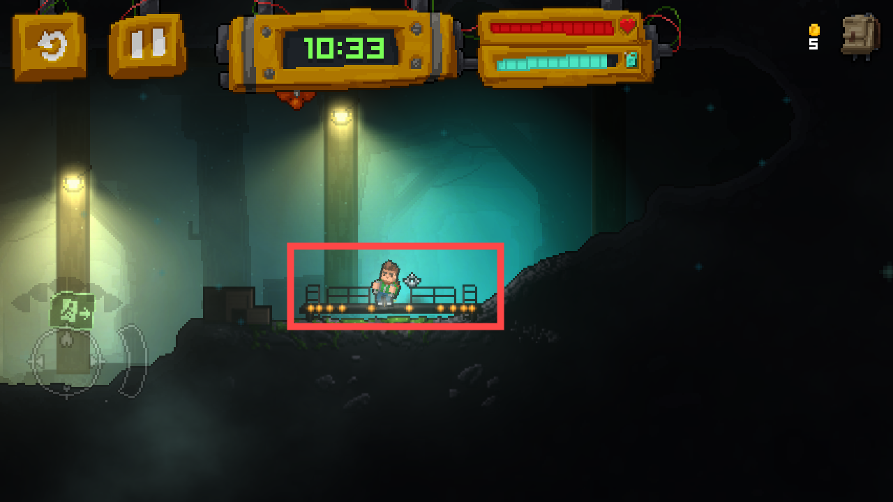 2、进入游戏后,利用红框内的虚拟方向键操控角色移动,探索关卡环境。