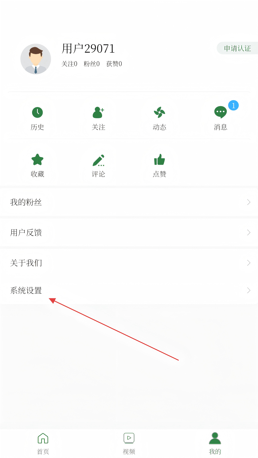 2、在个人页找到【系统设置】,点击进入设置界面。