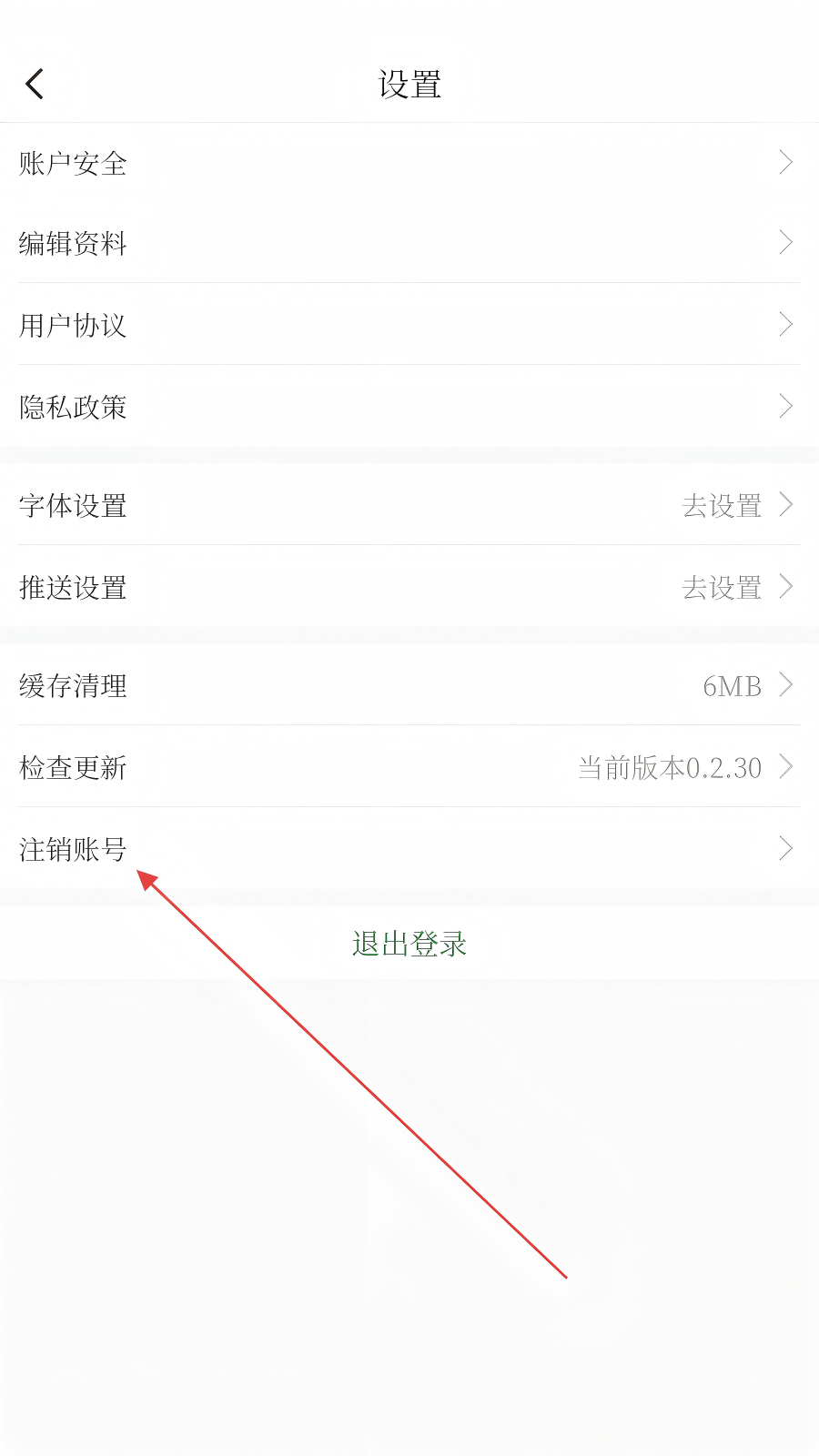 3、设置页中选择【注销账号】,进入注销流程。