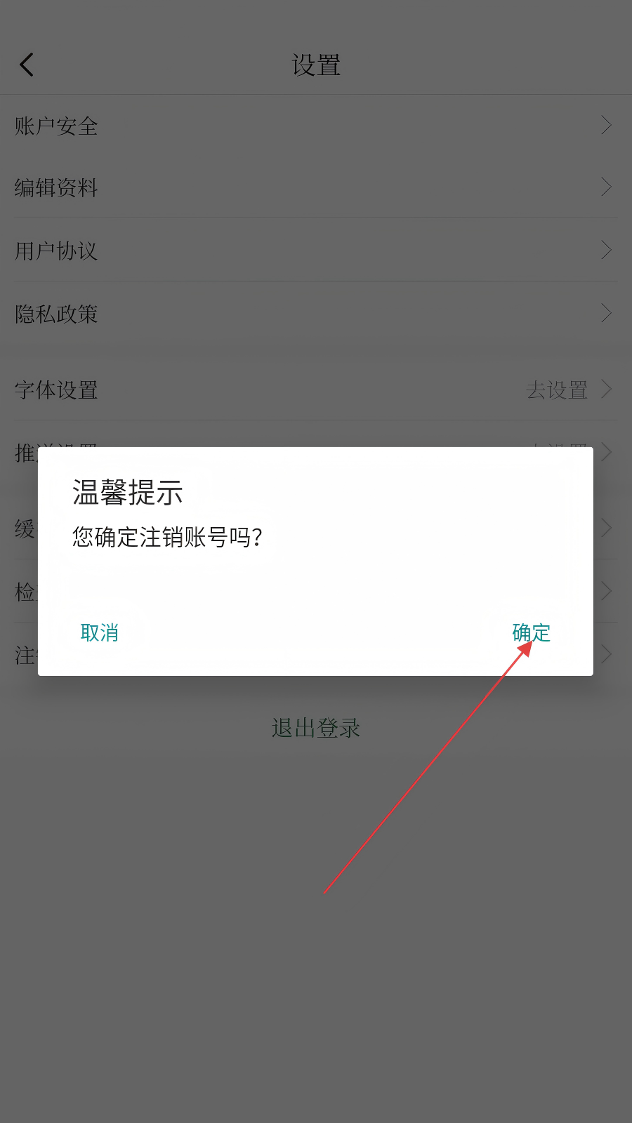 4、弹窗弹出【温馨提示】时,阅读后点击【确定】完成账号注销。