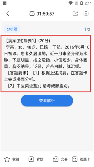 4、在模拟考试答题页,可查看题目内容,完成作答后可点击【查看解析】等功能操作。