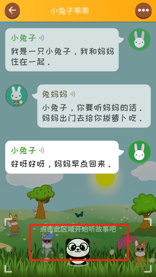 3、点击进入点读,是对话故事模式,点击下方的区域,则出现一句对话。