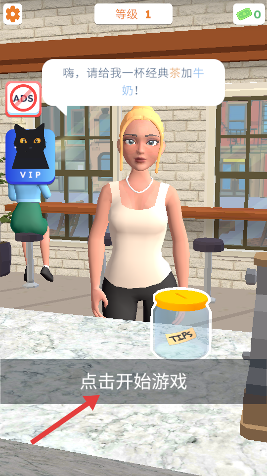 1、点击【点击开始游戏】,接收顾客经典茶加牛奶的订单。