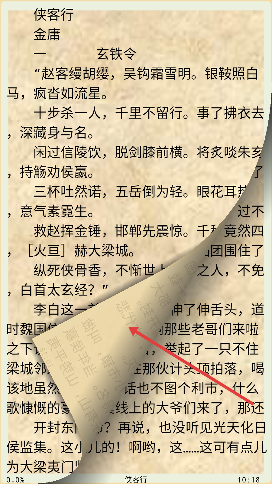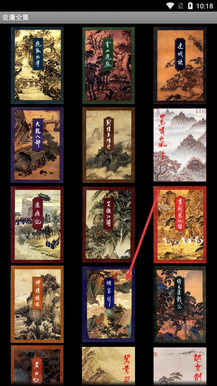1、在金庸全集列表中,点击【侠客行】封面,进入小说阅读界面。