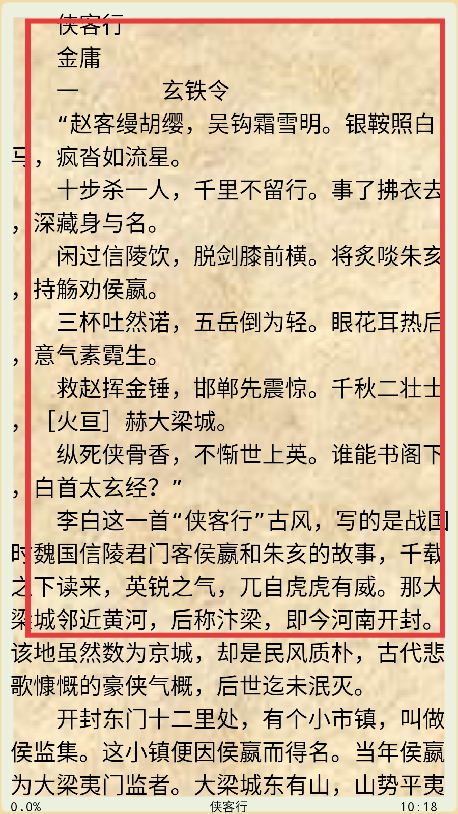 2、阅读章节开头内容,包含【李白诗句与背景介绍】,开启《侠客行》阅读体验。