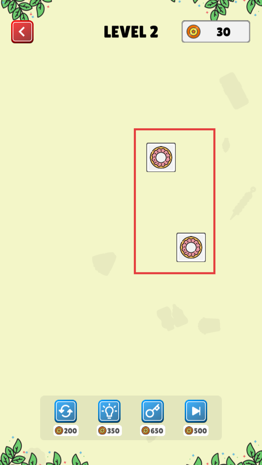 3、我们继续消除,直到场上只剩最后两个甜甜圈图案,把它们连起来完成最后一步消除吧。